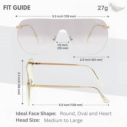 NYS Collection Rimless Oversized Flat Top Shield Sunglasses for Men Women – Aviator Style, 100% UV400 Protection