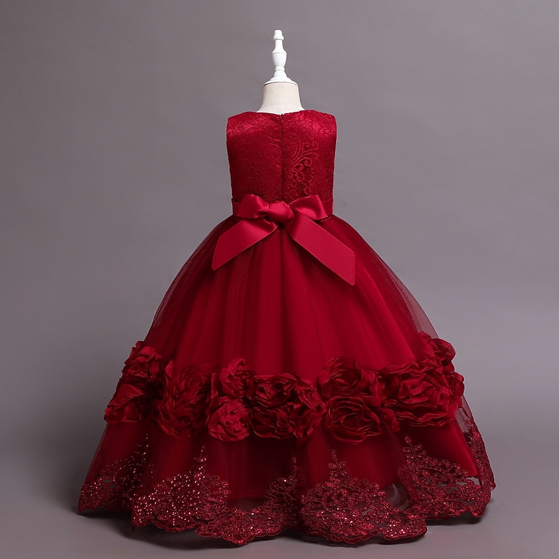 More information about Kids Little Girls' Dress Floral Plain A Line Dress Party Performance Mesh Bow White Purple Wine Asymmetrical Sleeveless Princess Sweet Dresses Spring Summer Regular Fit 3-12 Years