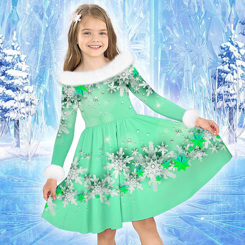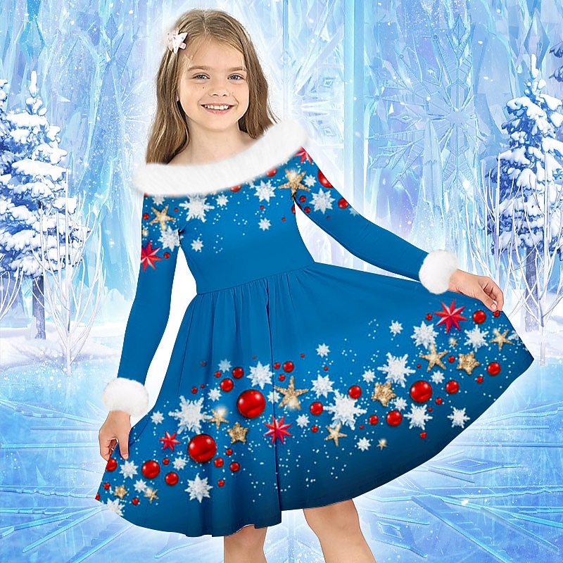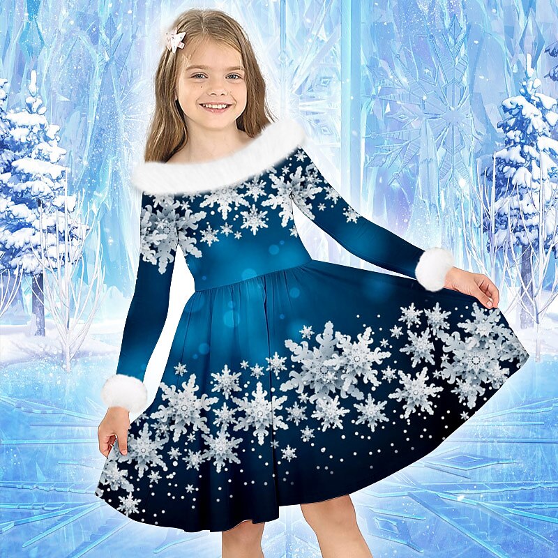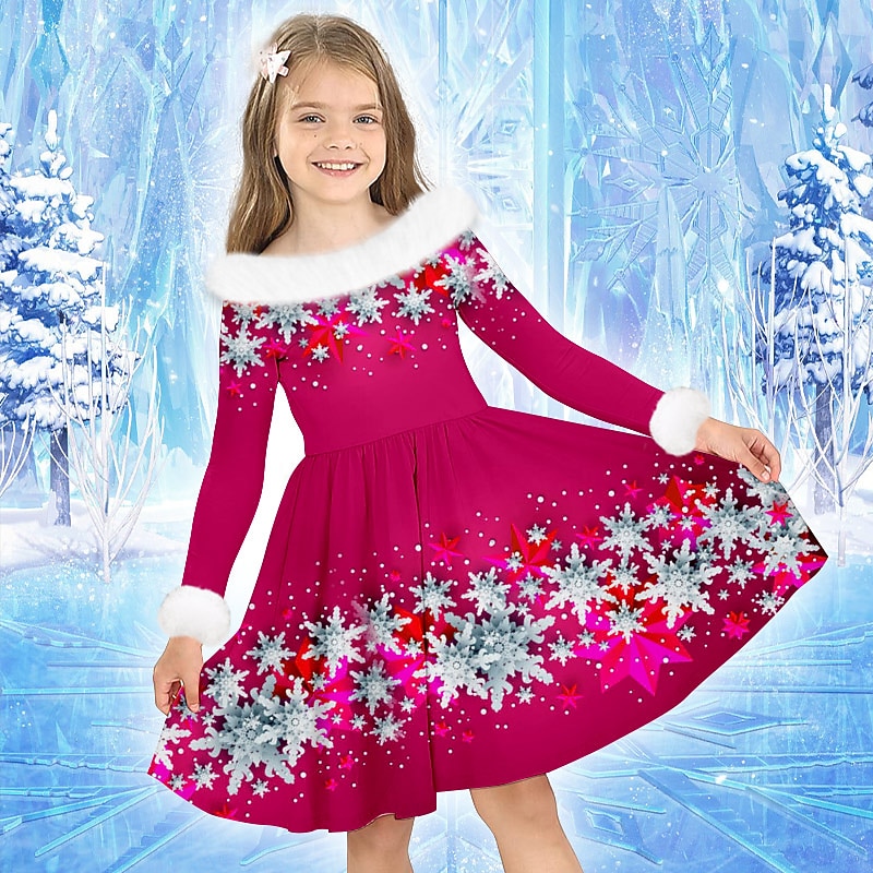 Why Choose Girls' 3D Snowflake Dress Long Sleeve 3D Print Fall Winter Sports & Outdoor Daily Holiday Cute Casual charming Kids 3-12 Years Casual Dress Swing Dress A Line Dress Above Knee Polyester Regular Fit?