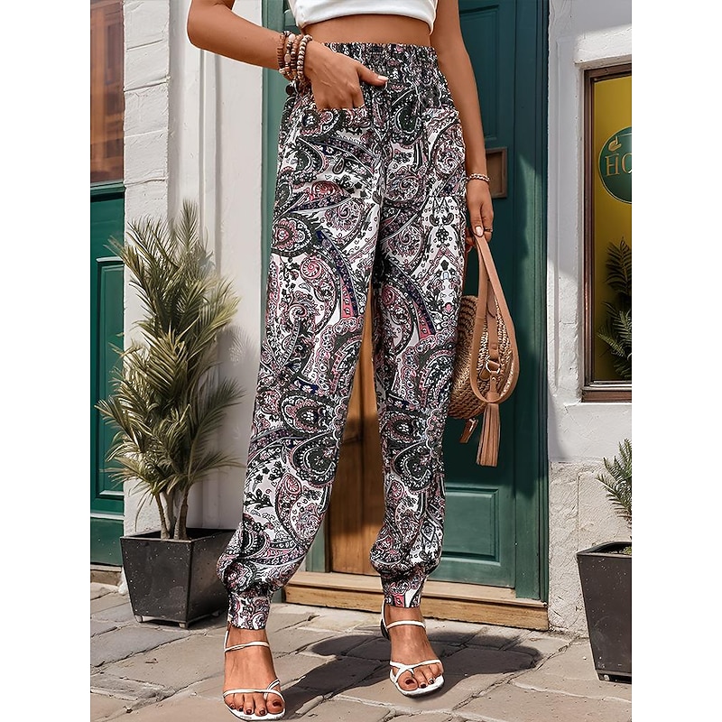 sizzling ! Women's Joggers Pants Trousers Casual Daily Long Paisley Pocket Split Print Breathability plush Inelastic Vacation Weekend Green Spring & Summer Regular Fit