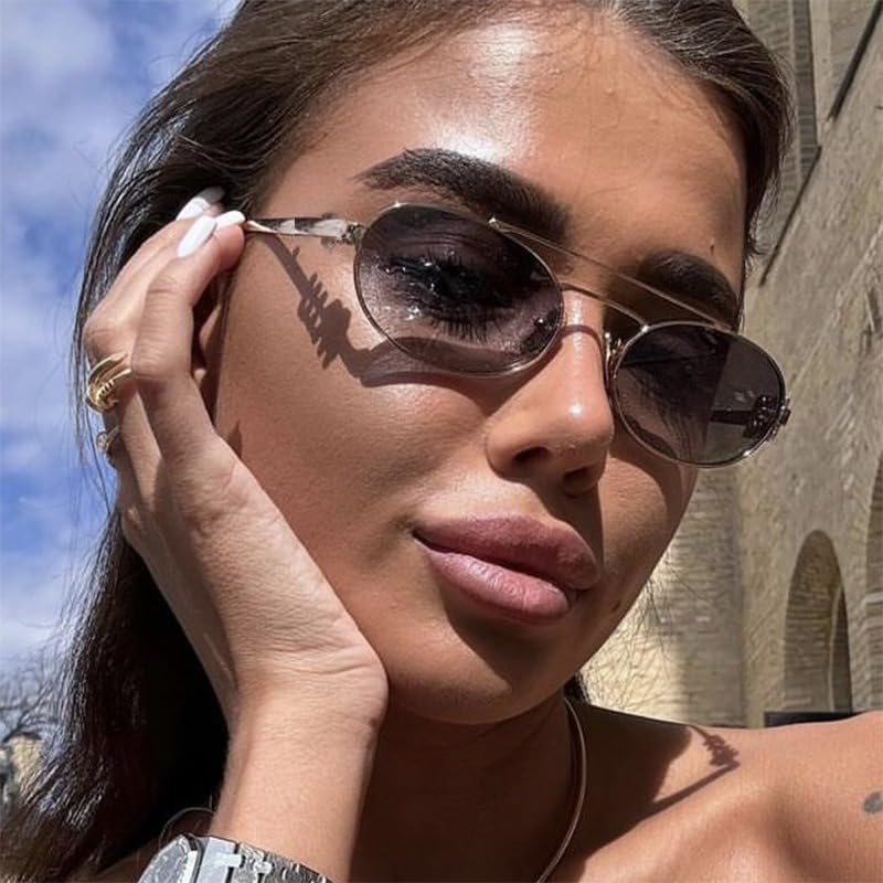 Origin: ImportedRetro Y2K Aesthetic, new-age Edge---Revive the iconic 2000s vibe with bold metallic temples and a minimalist oval silhouette—perfect for nailing the office siren trend or casual streetwear looks.UV400 Protection & Glare Reduction---Shield your eyes from 100% harmful UV rays and reduce glare, ideal for outdoor meetings, commutes, or sunny weekend adventures.Premium Metal Temples, Lightweight Comfort---Crafted with featherlight yet durable metal alloy, these frames stay comfortable all day—no slipping, no pressure marks.Dimensions: Lens Width---2.05inches; Lens Height---1.34inches; Temple Length---5.12inches; Nose Bridge---0.98inches; Frame Width--- 5.55inches. There may be slight differences due to manual measurement.Versatile Fit for Every Face Shape---The ergonomic oval shape (52mm lens width) flatters round, square, or heart-shaped faces, enhancing your natural features effortlessly. Perfect for everyday use. premium materials and excellent craftsmanship ensure long-lasting durability.
