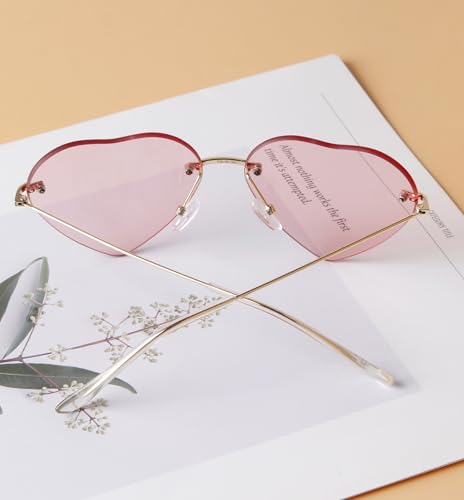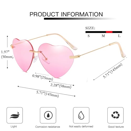 • 【RETRO RIMLESS SUNGLASSES】The love heart-shaped sunglasses look fashionable and novelty, making you look more attractive, suitable for exceptionally face shapes,superb fans gift