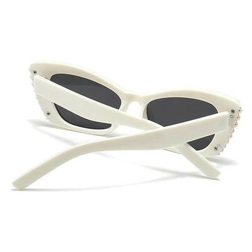 willochra Cat eye Pearl sunglasses Cute Trendy for Women Bling Fun Rhinestone Crystal Party Sun Shades uv400 F27 (white)