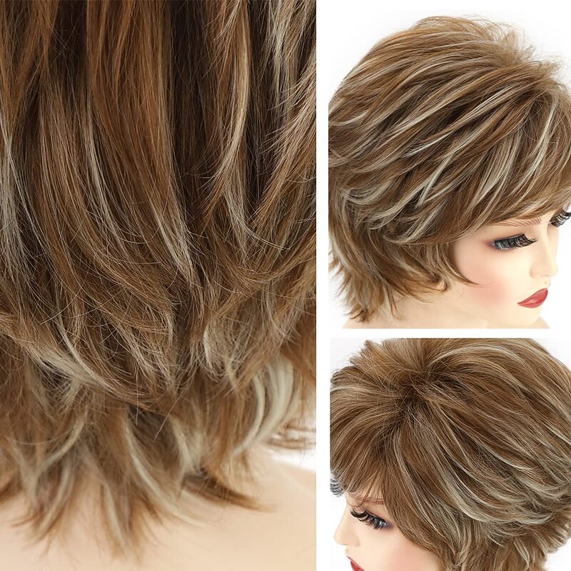 $24.99 - Short Brown Curly Wigs with Blonde Highlight Brown Pixie cut Wavy Wigs for White Women Layered Synthetic Full Wigs for Daily Party 2025. Shop for cheap Older Wigs online? Buy at lightinthebox.com on sale today!