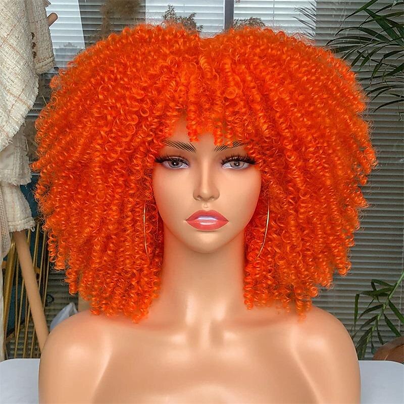 sizzling ! Curly Wig with Bangs for Black Women Short Kinky Curly Wig 14inch Afro Hair Carnival Party Christmas Cosplay Wigs