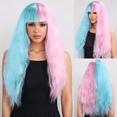 $23.99 - Synthetic Wig Bouncy Curl Water Wave Layered Haircut With Bangs Machine Made Wig 24 inch A1 Synthetic Hair Women's Classic Comfortable Ombre Hair Pink Blue 2025. Shop for cheap Party Wigs online? Buy at lightinthebox.com on sale today!
