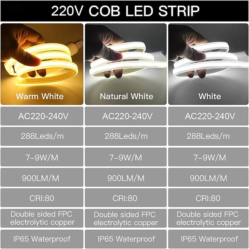 $16.99 - AC 220V COB LED Strip Lights Outdoor Waterproof IP65 White Super Bright 10W/M CRI 80 LED Rope Light With switch plug 2025. Shop for cheap LED Strip Lights online? Buy at lightinthebox.com on sale today!