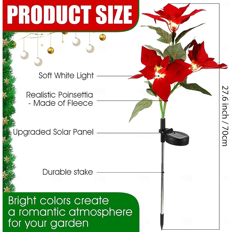 $42.99 - 2pcs Christmas Solar Poinsettia Stakes Lights, Solar Red Flower Light Garden Outdoor Waterproof Landscape Lamp Waterproof Xmas Party Home Garden Park Pathway Decoration 2025. Shop for cheap Solar String Lights online? Buy at lightinthebox.com on sale today!