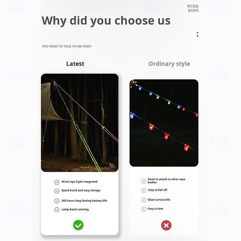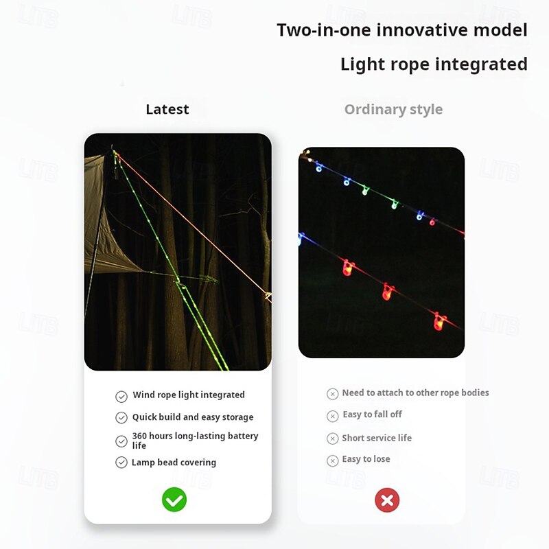 $23.99 - 1 Pc Outdoor Camping Rope Light – Waterproof Camping Luminous Wind Rope, 5M/16.4FT, 3 Lighting Modes, Windproof Canopy Tent Rope with AA Battery Box, Perfect for Outdoor Atmosphere Lighting 2025. Shop for cheap Battery String Lights online? Buy at lightinthebox.com on sale today!