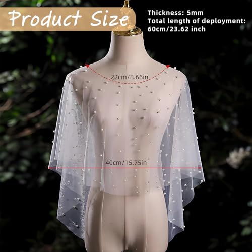 sizzling ! NICENEEDED Wedding Bridal Shawl, White Faux Pearl Cloaks, plush Tulle Capelet Beaded Cover Up, Evening Dress Shawl Prom Party Accessories for Women