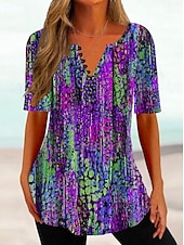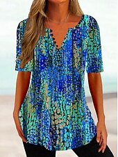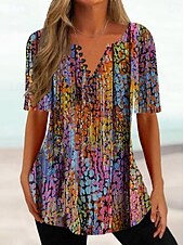 More information about Women's T Shirt Ombre Floral Basic Short Sleeve Round Neck Regular Tops Daily Going out Weekend Buttons Print Blue Purple Fuchsia Summer Spring