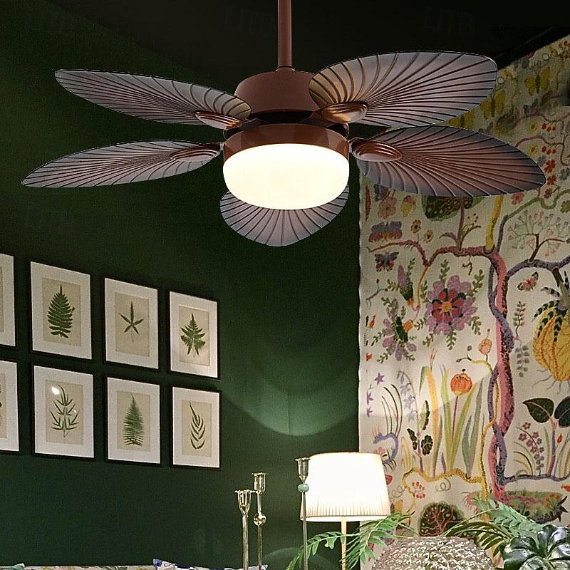 Why Choose LED Ceiling Fans Palm Leaf Blades 1-Light 130cm Metal 3-Color-Light Nordic Style Bedroom Dining Room 110-240V?