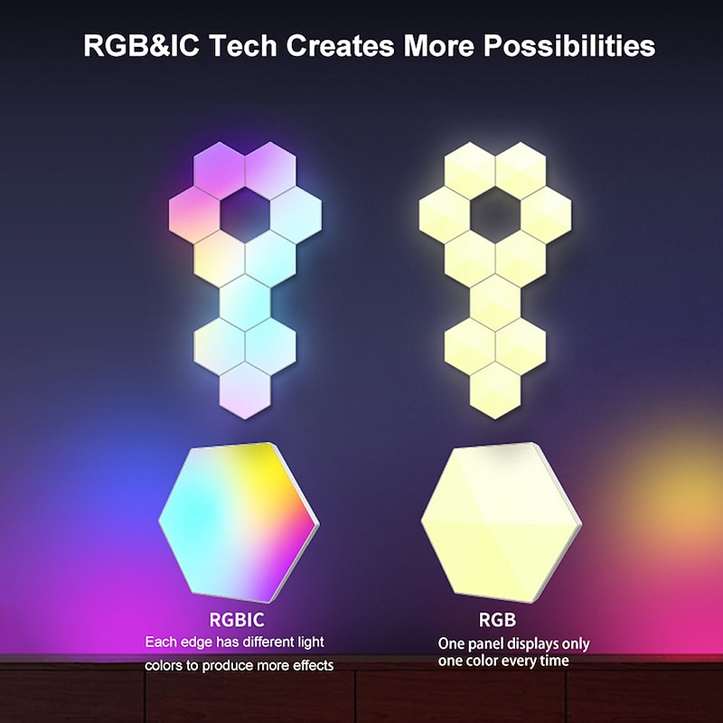 More information about RGBIC LED Smart Light Board Hexagon Lamp Indoor Atmosphere Wall Lamp Voice Control APP Night Light Game Room Bedroom Decoration