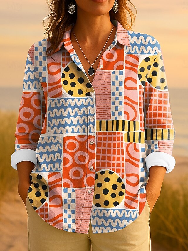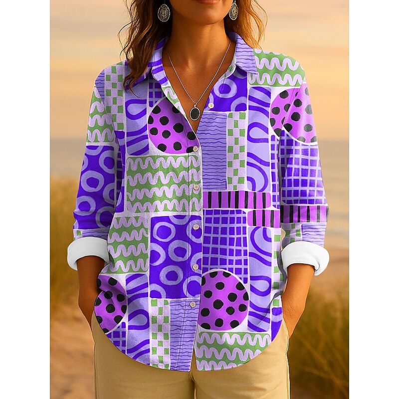 This Women's Shirt Button Down Tunic Shirt Collar Long Sleeve Graphic Geometric Striped Vintage Tropical Daily Regular Tops Work Daily s Print Blue Purple Orange Green Spring combines elegant design with practical functionality. Every detail has been carefully considered to ensure you get the best possible experience. The magnificent construction means this product will serve you well for years to come.