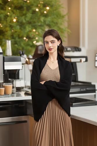 Fabric type: Cashmere Viscose polyamideCare instructions: Hand Wash OnlyOrigin: ImportedSKIN-FRIENDLY FABRIC This soft cashmere shawl is made primarily from 30% cashmere + 70% nylon, crafted with a plain weave for a warm, soft, and resilient feel. It’s lightweight, gentle on the skin, and won’t cling to your neck.ALL-SEASON VERSATILITY This elegant wrap can be worn as a scarf or shawl, perfect for all seasons: spring, summer (in office or at home in air-conditioned rooms), fall, and winter. You can choose the ideal type of shawl based on weather and temperature.LOOSE FIT Measuring 53.15 inches in length and 25.59 inches in width, this cozy, warm knitted pashmina with sleeves has a loose, comfortable fit. It’s stylishly layered over dresses, helping to keep you warm while accentuating your figure in a flattering way.COLOR OPTIONS Available in colors like black (elegant and mysterious), brown (subtle elegance), beige (calm and intellectual), blue (gentle and tolerant), so you can choose the perfect color for each occasion.SUITABLE FOR MULTIPLE OCCASIONS This versatile, open-front poncho cape is perfect for both formal events like evening parties and weddings, as well as casual gatherings like travel, parties, and camping, adding a touch of sophistication to any outfit. Perfect for everyday use. supreme materials and excellent craftsmanship ensure long-lasting durability.