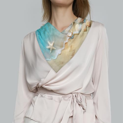 More information about Square Head Scarf Starfish Shells Sea Bandana Silk Feel appreciate Hair Wrap Shawl Lightweight Scarves Fashion Accessories for Women Girls