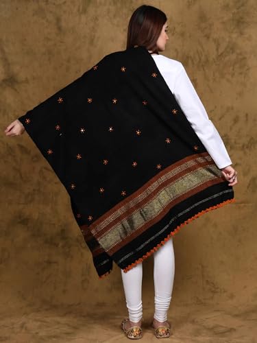 Why Choose Stole from Kutch with Embroidered Mirrors and Golden Border?