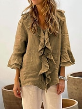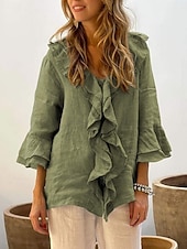 At time.prodaxen.com, we believe in providing our customers with only the best products. This Women's Shirt Solid Color Stylish Casual Long Sleeve V Neck Regular Tops Daily Ruffle White Yellow Red Brown Green Summer Spring Fall is designed with attention to detail and high quality craftsmanship that you can see and feel. Whether you're looking for functionality, style, or both, this product delivers exceptional value.