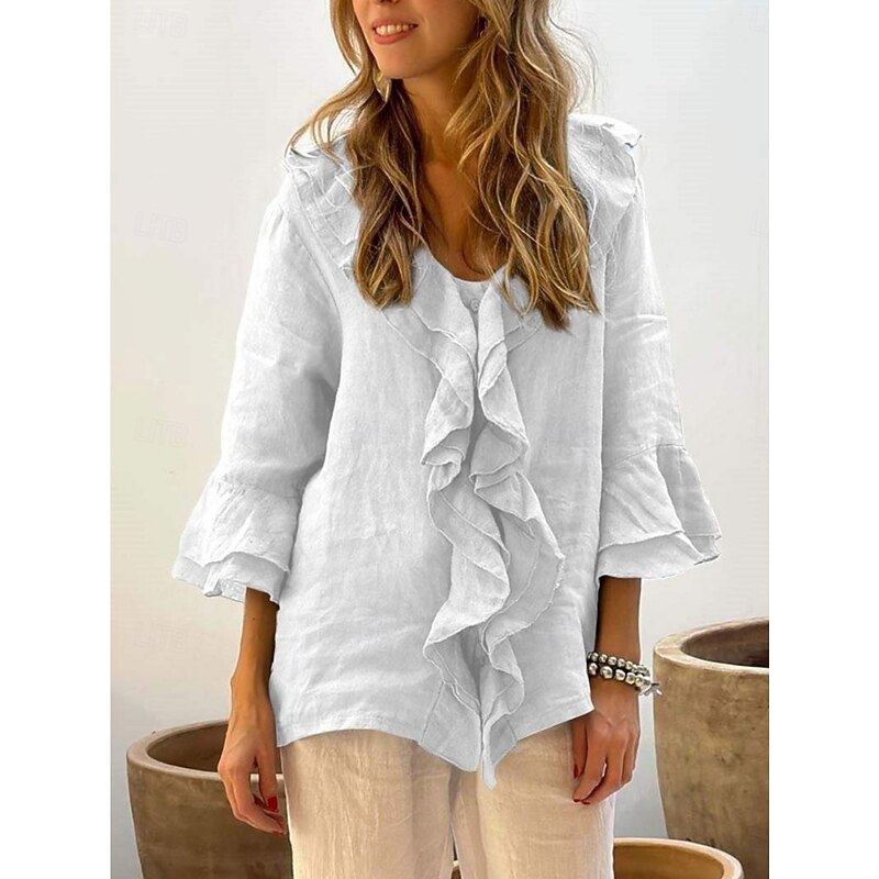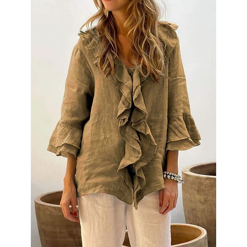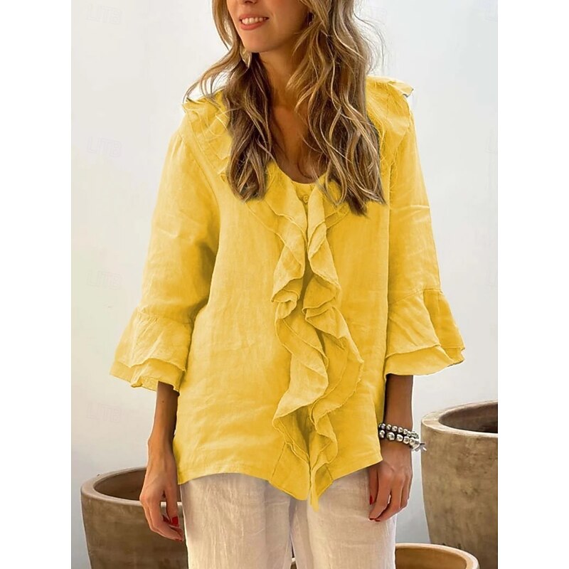This Women's Shirt Solid Color contemporary Casual Long Sleeve V Neck Regular Tops Daily Ruffle White Yellow Red Brown Green Summer Spring Fall combines elegant design with practical functionality. Every detail has been carefully considered to ensure you get the best possible experience. The premium construction means this product will serve you well for years to come.