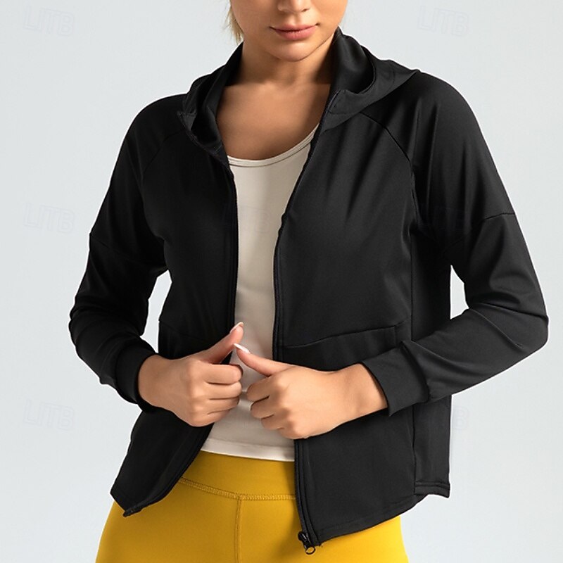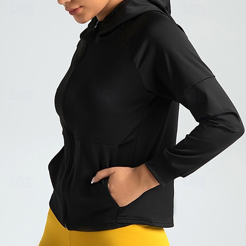 sizzling ! Women's Running T-Shirt Zipper Pocket Long Sleeve Hoodie Casual Athleisure Solid Colored hasty Dry Breathable Gym Workout Walking Jogging Sportswear Activewear Black Navy Blue Blue