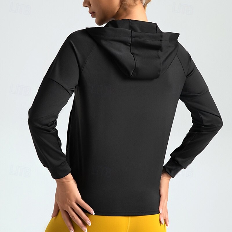 More information about Women's Running T-Shirt Zipper Pocket Long Sleeve Hoodie Casual Athleisure Solid Colored hasty Dry Breathable Gym Workout Walking Jogging Sportswear Activewear Black Navy Blue Blue