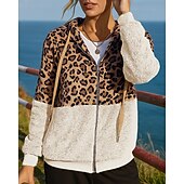 sizzling ! Women's Outdoor Recreation Coatv Polar plush Fleece Jacket Drawstring Hooded Long Sleeve Top Athleisure Leopard prints Windproof Lightweight cozy Hiking Workout Athletic Sportswear Activewear White