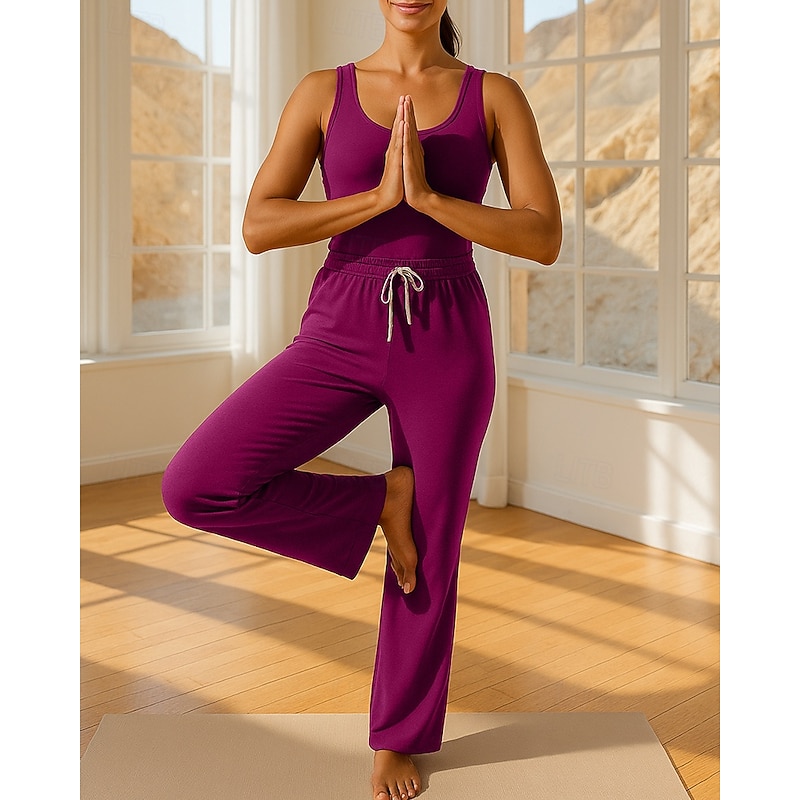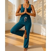 $39.99 - Women's Yoga Jumpsuit Onesie Pocket Henley Pilates Fitness Yoga Camisole Wide Leg Pant Solid Color Black Blue Green Sports Activewear Micro-elastic 2025. Shop for cheap Wide Leg Pants online? Buy at lightinthebox.com on sale today!