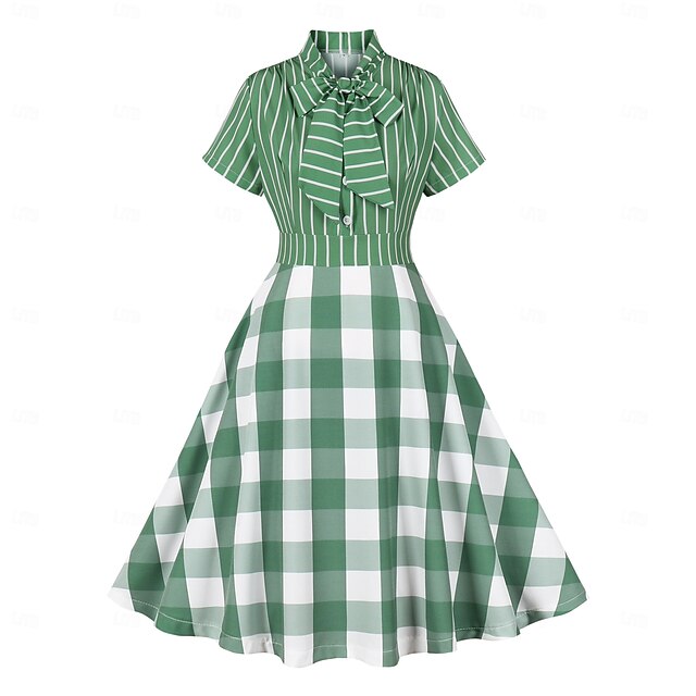 Why Choose Retro Vintage 1950s Rockabilly Midi Swing Dress Flare Dress Shirt Dress Fit and Flare Plaid Fancy Dress Women's Masquerade Vacation Casual Retro Theme Party Adults Dress Spring & Summer?
