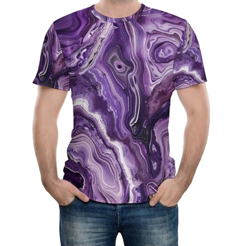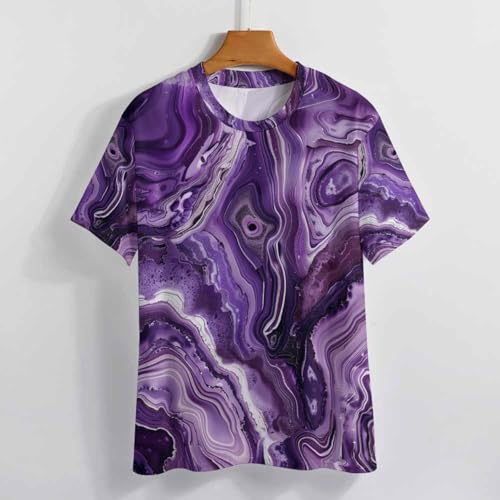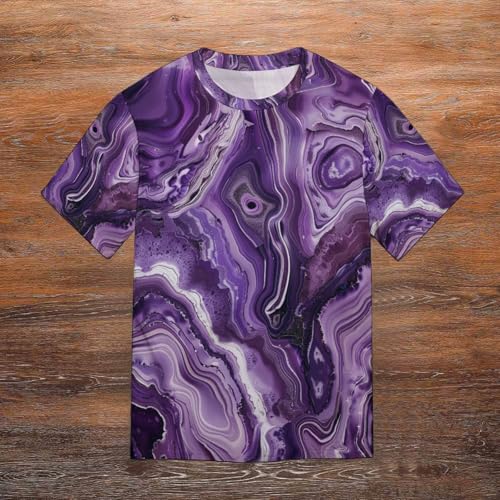 Purple Marble Men's T-Shirt Abstract Striped gentle Shirts Fashion Geometric Crewneck Sports Tees for Men