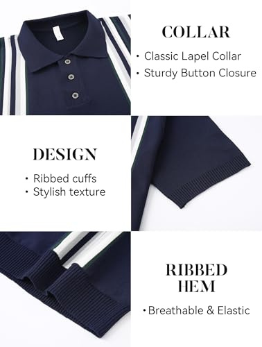 Esabel.C Mens Polo Shirts Short Sleeve Striped Casual Fashion Knit Golf Shirt Regular Fit