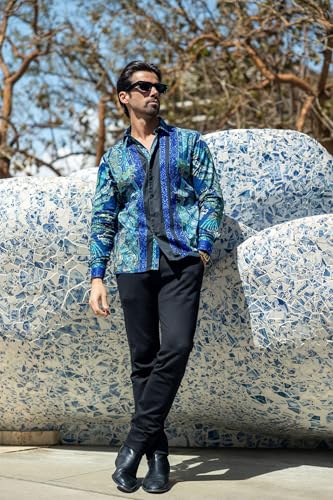 More information about Barabas Men's Rhinestone Floral Rooster Long Sleeve Shirts 4SPR10