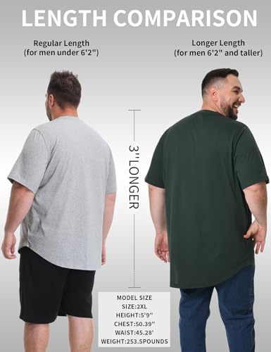 Idtswch Mens Big and Tall T-Shirts Loose Fit Heavyweight Longline Tee(Regular&Longer Length)