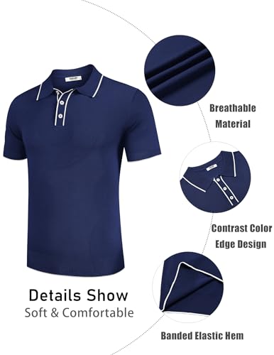COOFANDY Mens Knit Polo Shirts Short Sleeve Vintage Stretch Polo T Shirts Casual Summer Golf Shirts