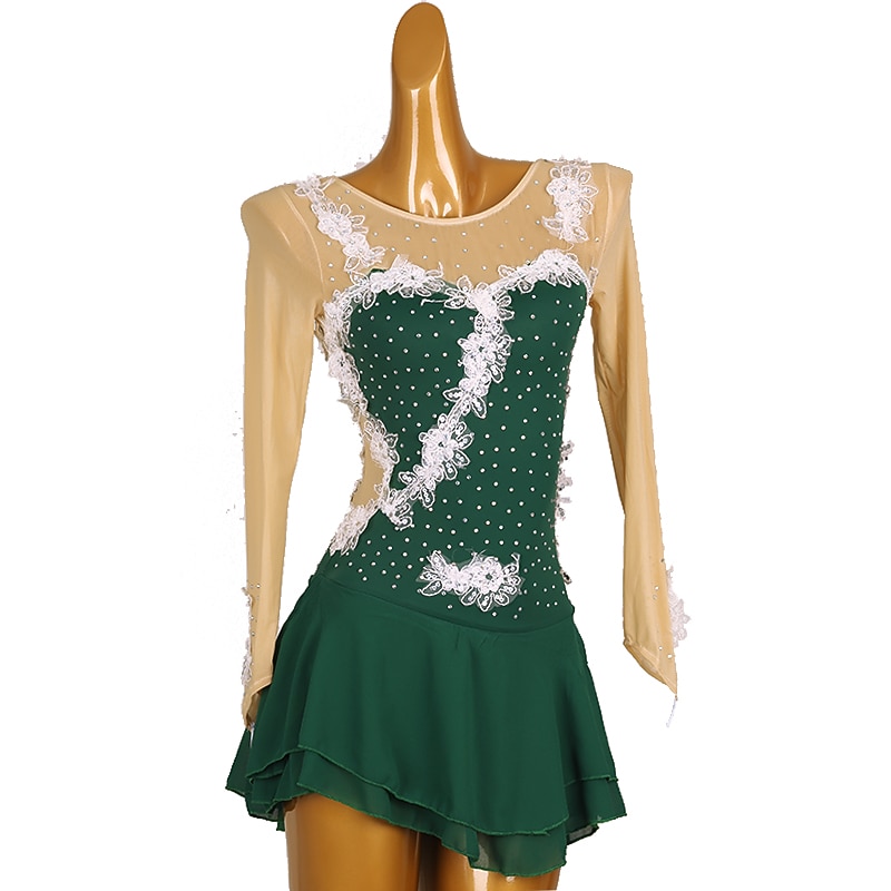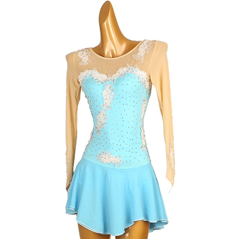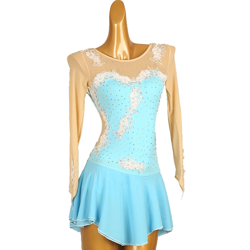 Why Choose Figure Skating Dress Women's Girls' Ice Skating Dress Lake Blue Yellow Pink Patchwork Open Back Mesh High Elasticity Training Competition Skating Wear iconic Long Sleeve Ice Skating Figure Skating?