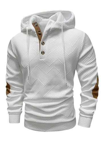 Men's Textured Button Front Hoodie Sweatshirts Drawstring Jacquard Pullover Hoodies
