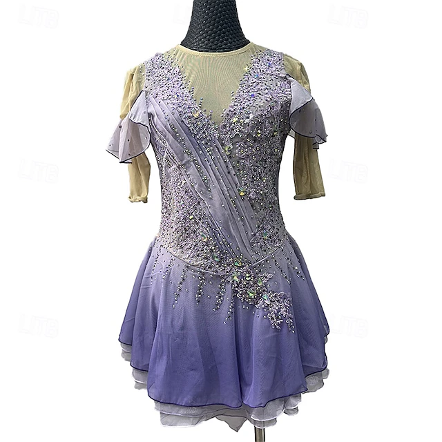 More information about Figure Skating Costume For Adults And Children Customized Spliced Version Spandex Mesh Grading Performance Costume Competition Training Black And Red Spliced Women's Skirt Performance Costume