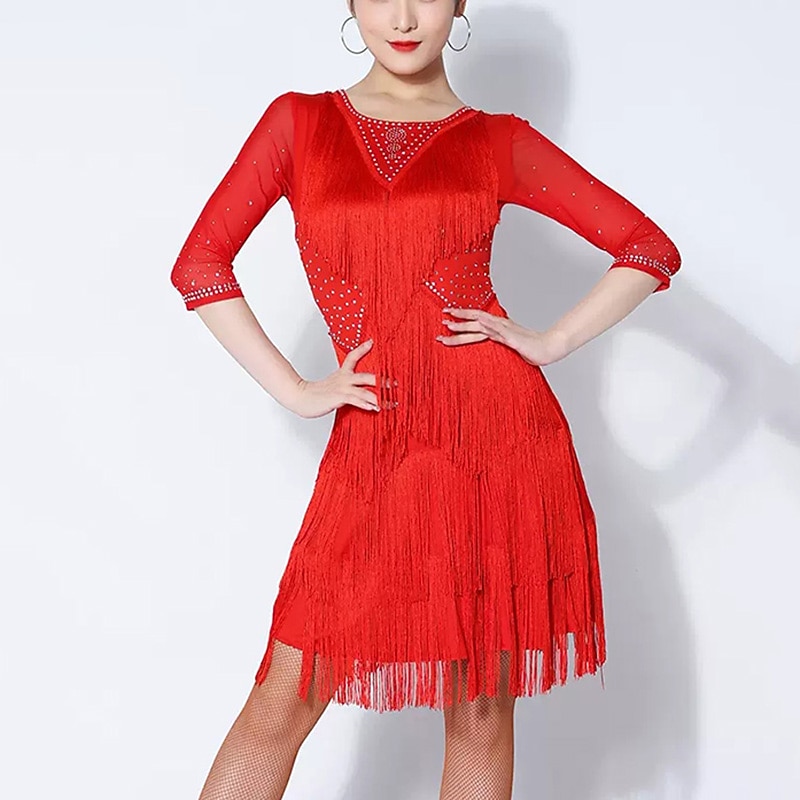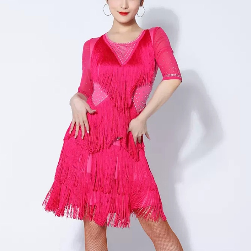 $152.99 - Latin Dance Dress Rhinestone Tassel Splicing Women's Performance Training Half Sleeve Mesh Spandex 2025. Shop for cheap Competition Dress online? Buy at lightinthebox.com on sale today!
