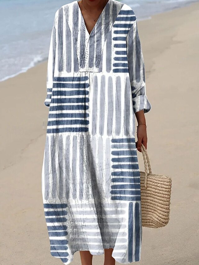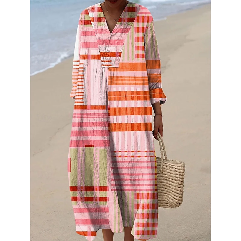 More information about Women's Midi Dress V Neck Long Sleeve Kaftan Lightweight Loose Fit Casual Dress A Line Dress Casual Boho Party Loose Fit Graphic Geometric Long Sleeve V Neck Black Yellow Pink Red Fall