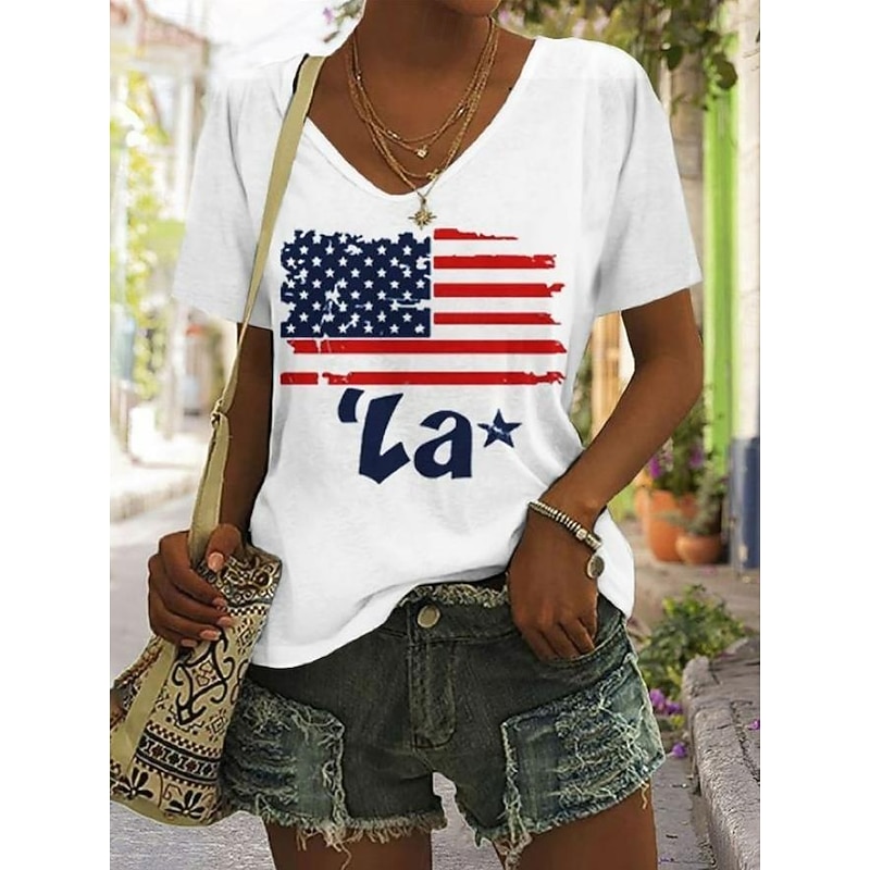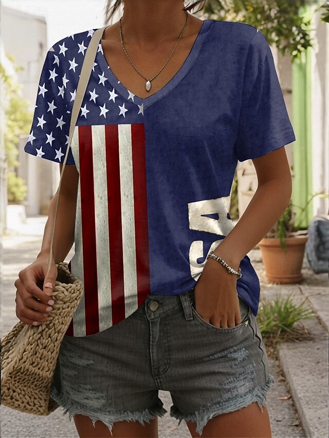 Why Choose Women's Patriot Veteran Patriotic Blouse Flag Casual Red White And Blue Short Sleeve V Neck Regular Tops Daily Print Blue Summer Spring?