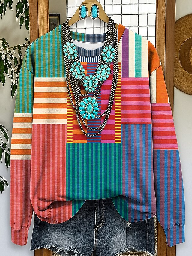 At time.prodaxen.com, we believe in providing our customers with only the best products. This Women's Sweatshirts Graphic Striped Casual Long Sleeve Crew Neck Regular Tops Street Dailywear Casual Print Yellow Red Blue Purple Fall Winter is designed with attention to detail and high quality craftsmanship that you can see and feel. Whether you're looking for functionality, style, or both, this product delivers exceptional value.
