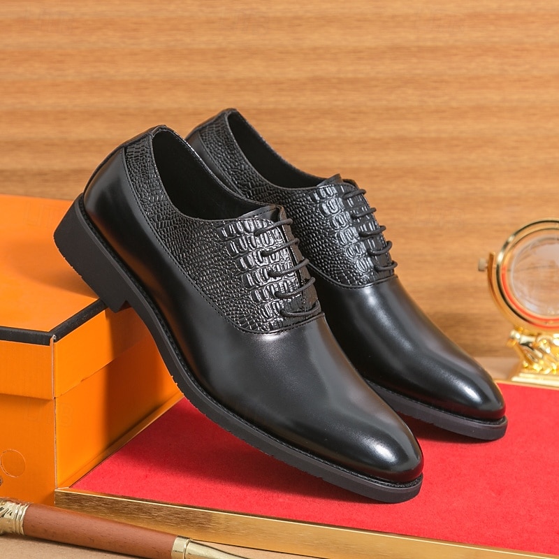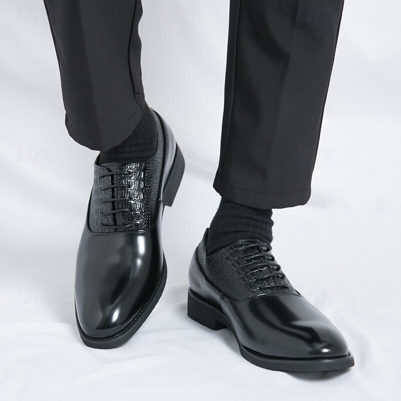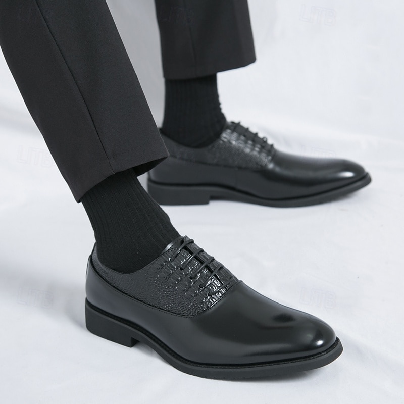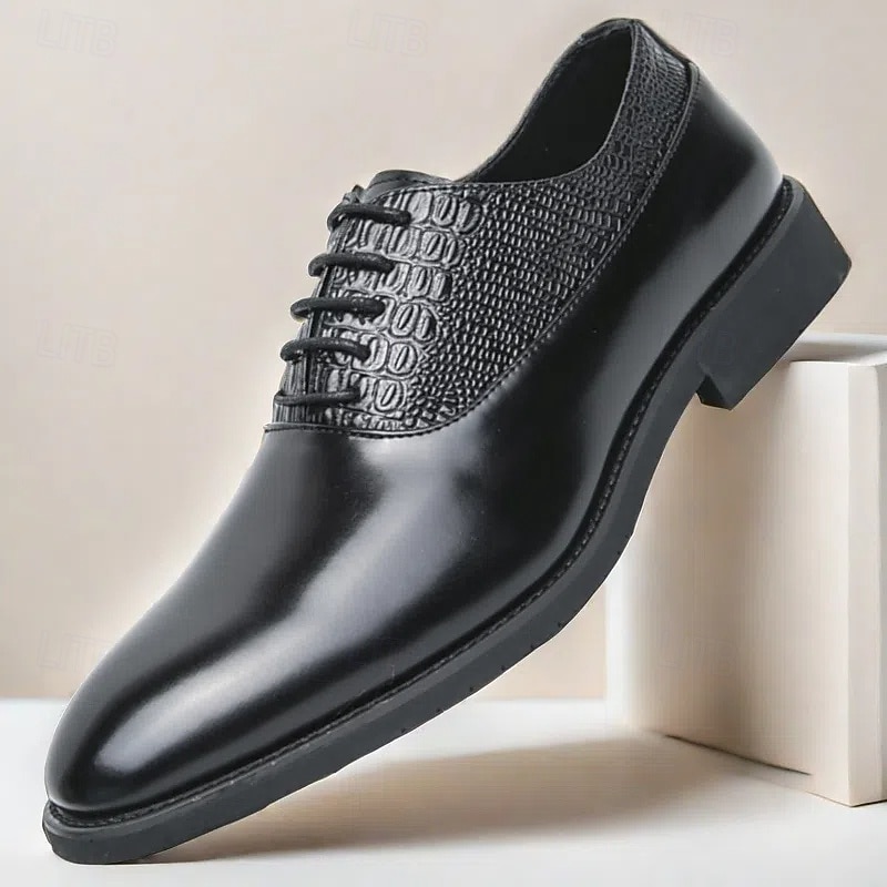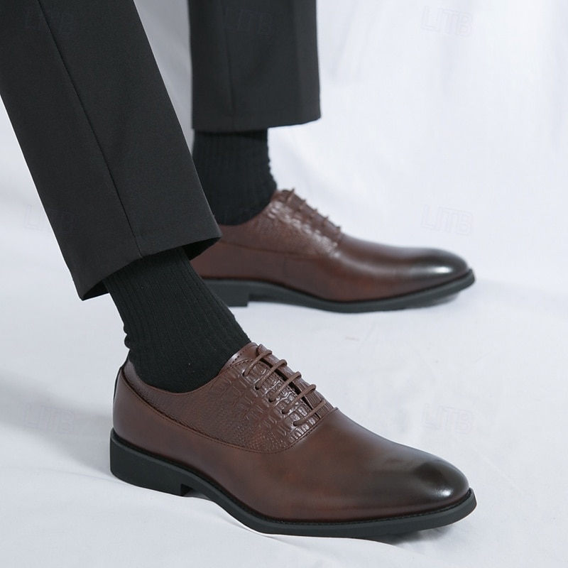 At time.prodaxen.com, we believe in providing our customers with only the best products. This Men's Dark Brown Oxford Shoes - Faux Leather with Crocodile Texture Embossing and Perforation Detailing, Elegant Formal Footwear for Men, Ideal for Weddings, Business & Special Occasions is designed with attention to detail and high quality craftsmanship that you can see and feel. Whether you're looking for functionality, style, or both, this product delivers exceptional value.