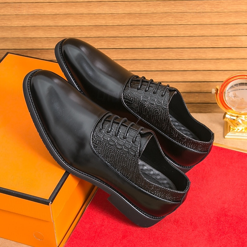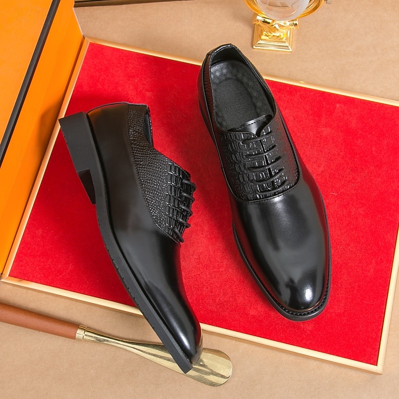 Why Choose Men's Dark Brown Oxford Shoes - Faux Leather with Crocodile Texture Embossing and Perforation Detailing, Elegant Formal Footwear for Men, Ideal for Weddings, Business & Special Occasions?