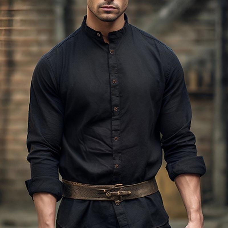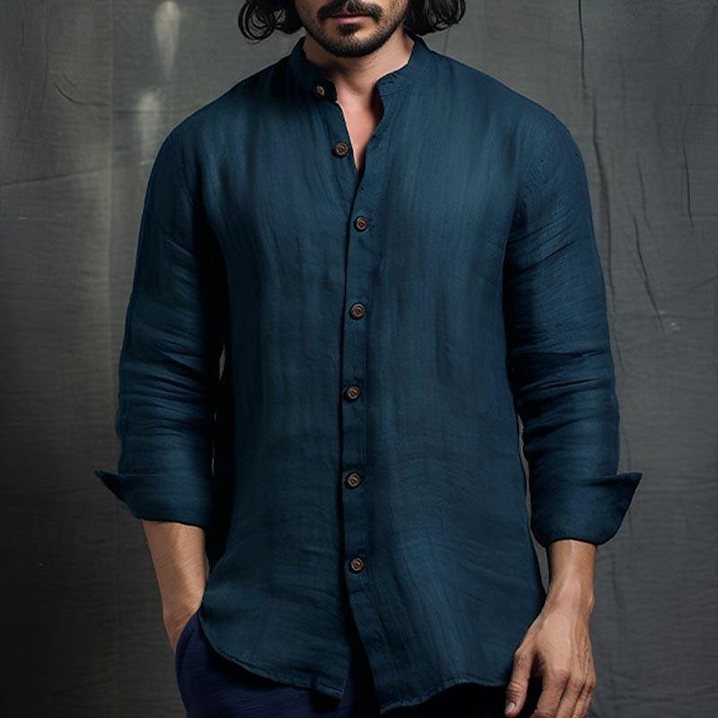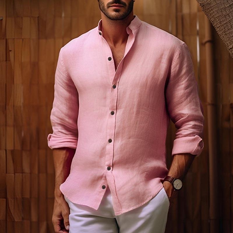 Men's Shirt Chinese Collar Shirt Mandarin Collar Shirt Casual Shirt Button Up Shirt Cotton Shirt Plain Vacation Hawaiian Black White Pink Navy Blue Long Sleeve Grandad Collar Spring & Fall Clothing