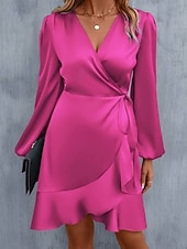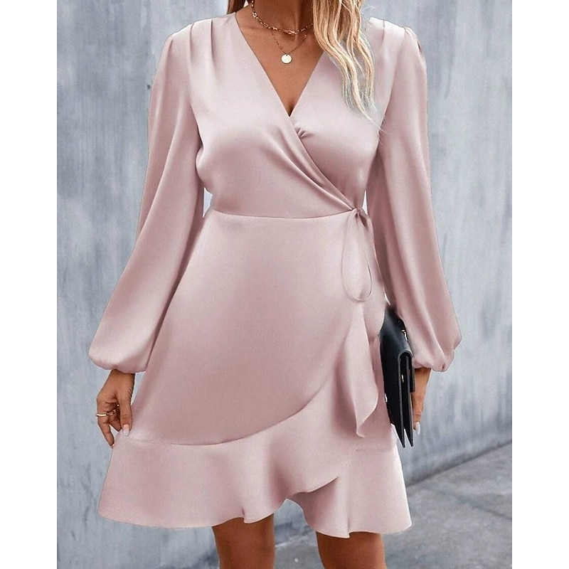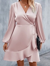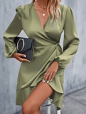 More information about Women's Midi Dress Black Dress Casual Dress Wrap Dress Elegant Fashion contemporary Outdoor Daily Going out Regular Fit Plain Long Sleeve V Neck Light Pink Black Pink Army Green Summer Spring Winter Autumn