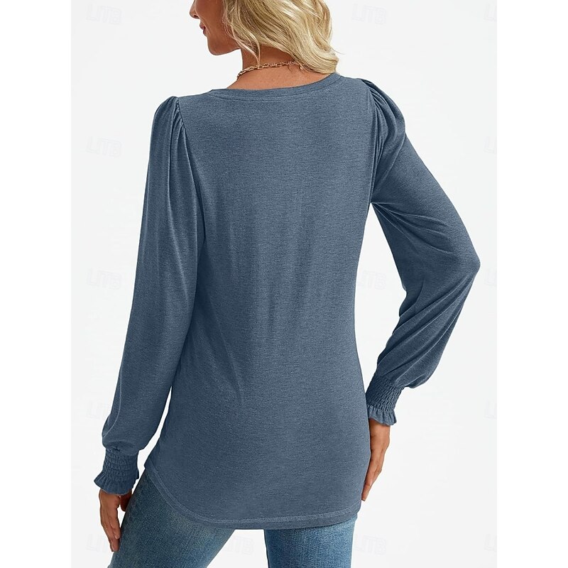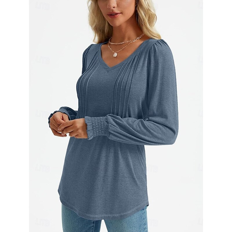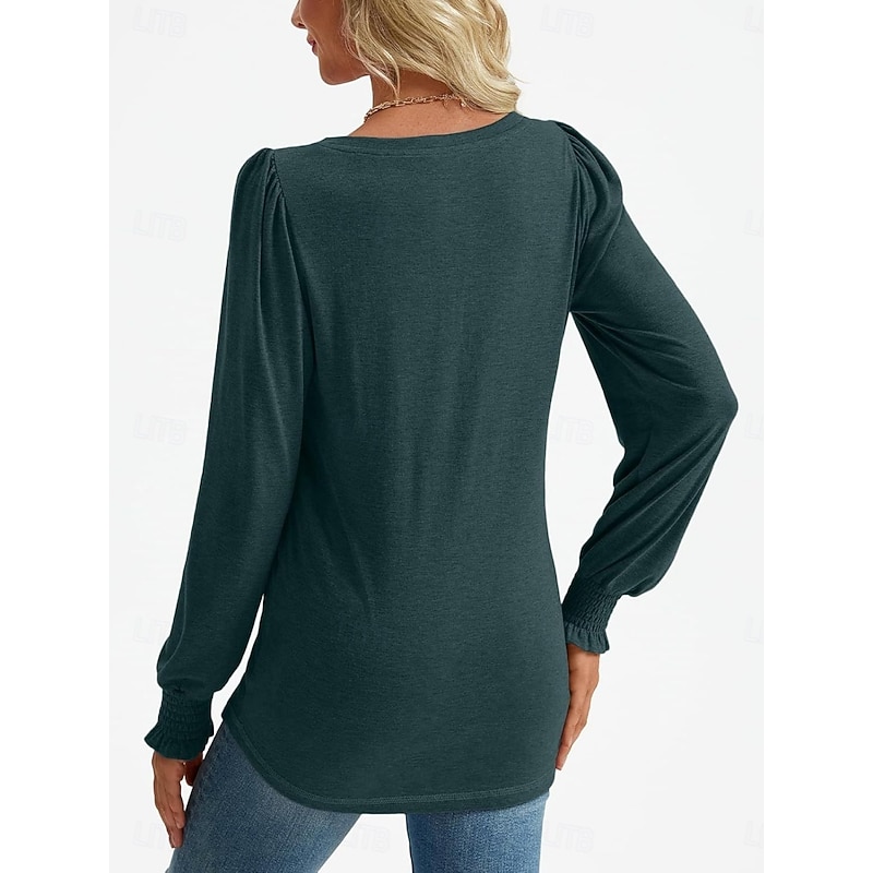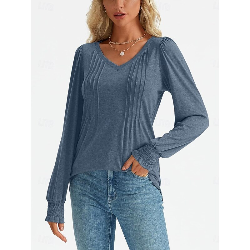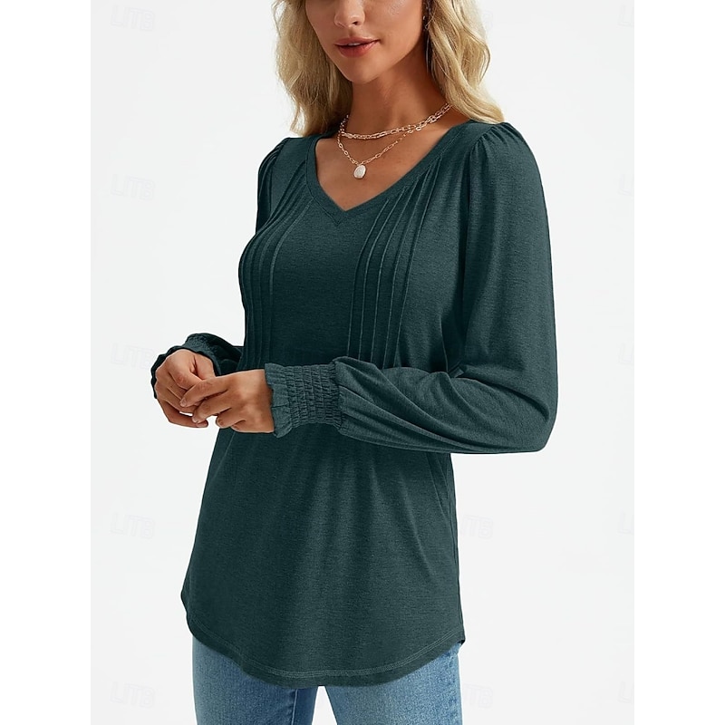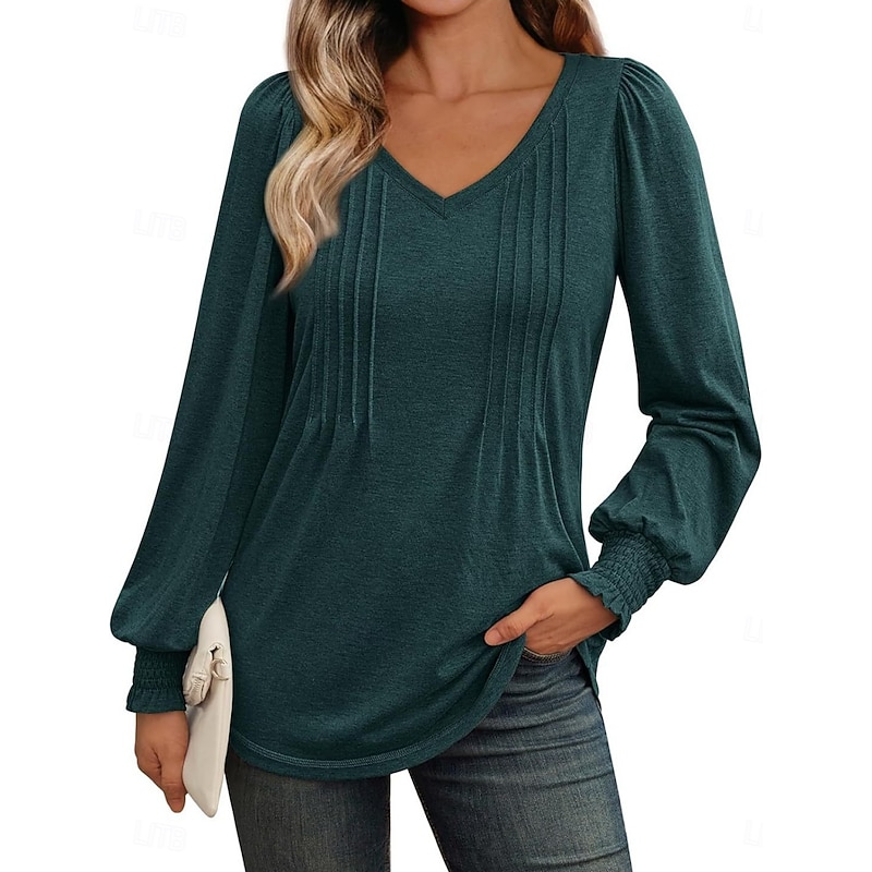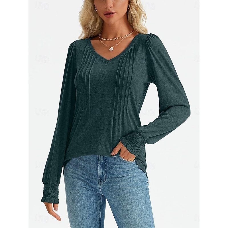 This Women's Shirt Blouse Solid Color Basic Casual Long Sleeve V Neck Regular Tops Daily Ruched Smocked Pink Blue Green Summer Spring combines elegant design with practical functionality. Every detail has been carefully considered to ensure you get the best possible experience. The magnificent construction means this product will serve you well for years to come.