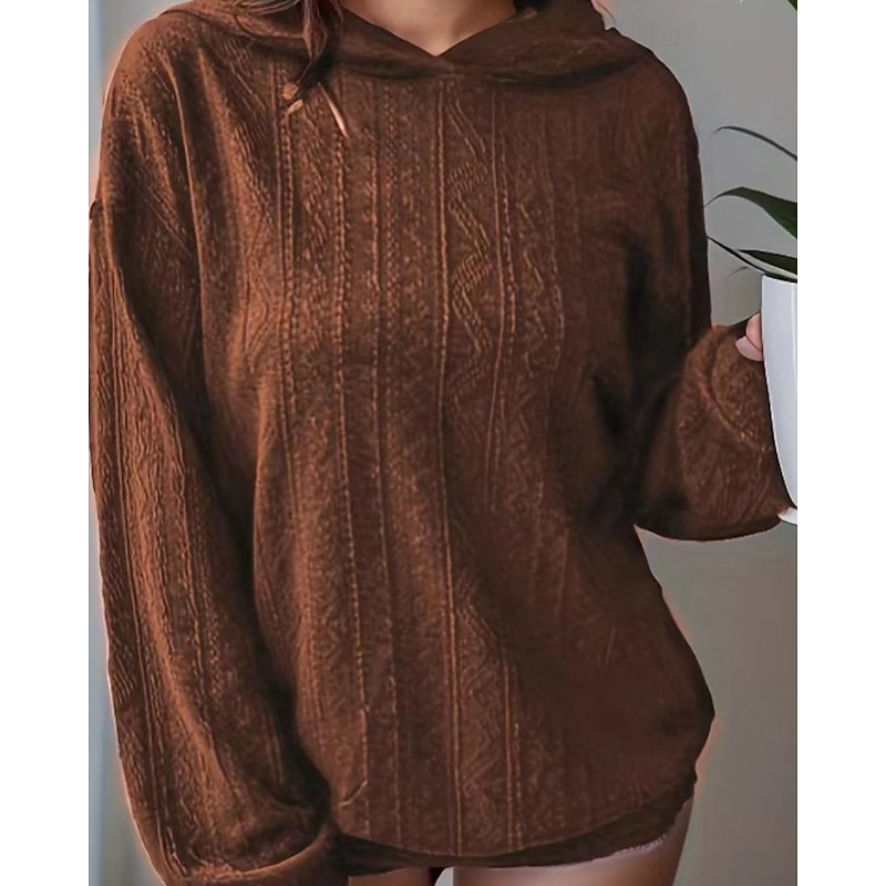 sizzling ! Women's Pullover Hoodie Sweatshirt Plain Casual Long Sleeve Hooded Regular Tops Street Dailywear Patchwork Black Brown Gray Fall Winter