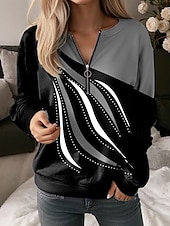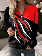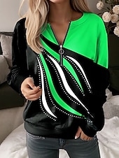 More information about Women's Pullover Sweatshirt Zip Up Sweatshirts Graphic Geometric Abstract Fashion Casual Long Sleeve Crew Neck Regular Tops Street Dailywear Zipper Print Red Blue Purple Green Gray Spring Fall Winter