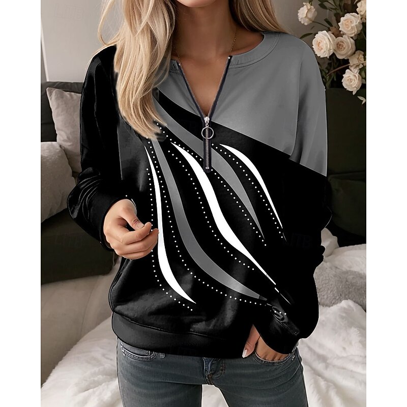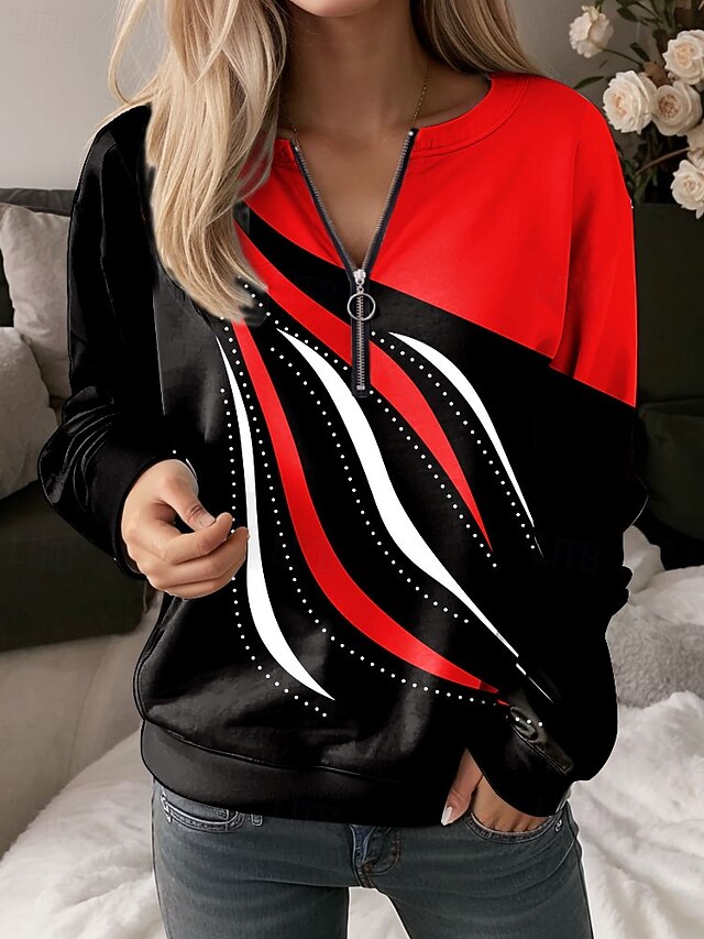 sizzling ! Women's Pullover Sweatshirt Zip Up Sweatshirts Graphic Geometric Abstract Fashion Casual Long Sleeve Crew Neck Regular Tops Street Dailywear Zipper Print Red Blue Purple Green Gray Spring Fall Winter