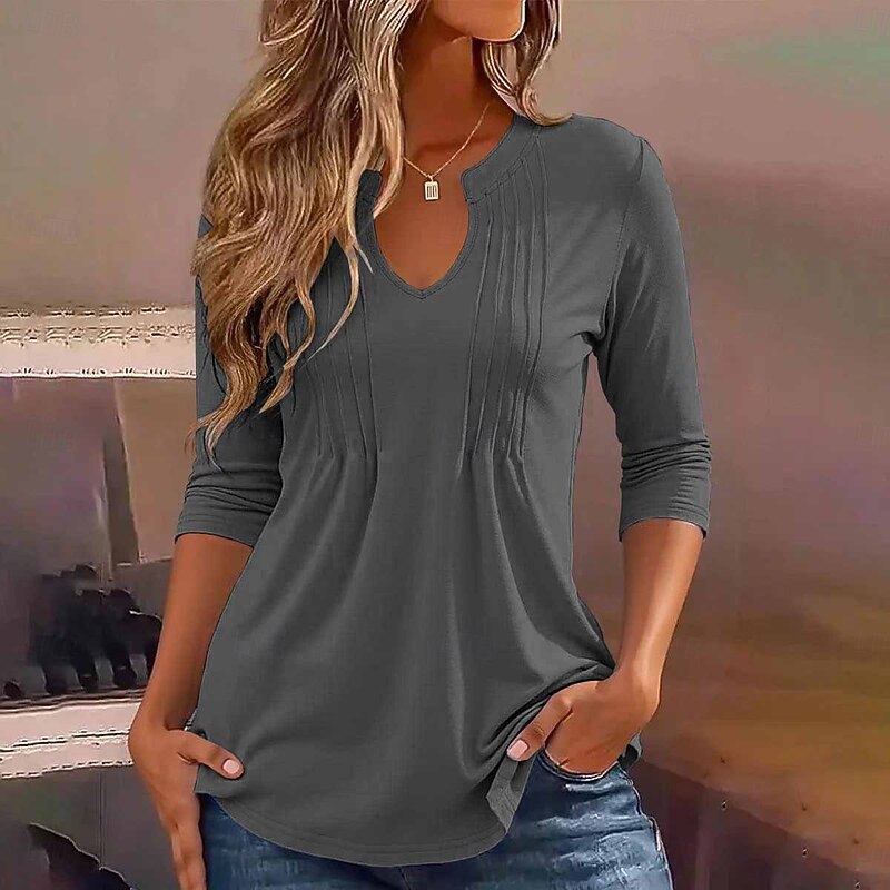 More information about Women's Tunic Solid Color Elegant Vintage sleek Long Sleeve V Neck Regular Tops Daily White Pink Blue Purple Khaki Spring Fall