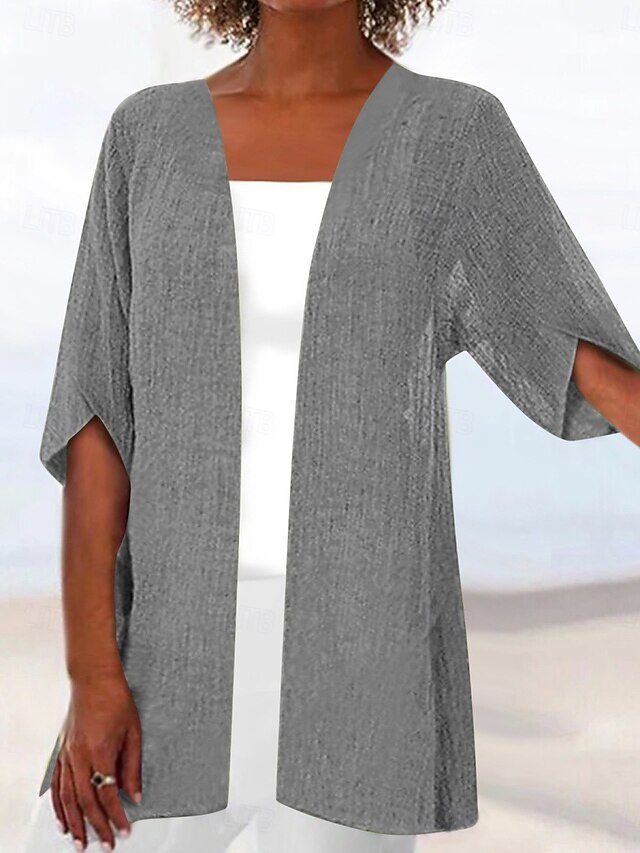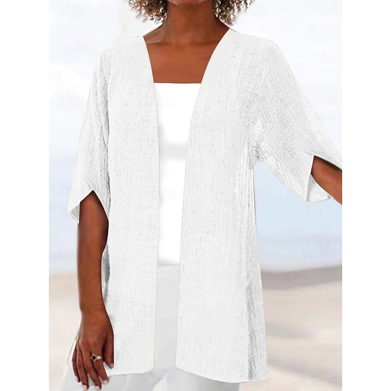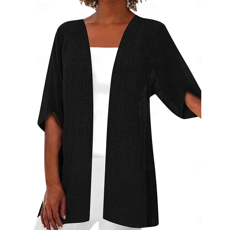 This Women's Casual Jacket Breathable cushy Oversized Casual Plain Casual Daily Wear Open Front Regular Collarless Regular Fit Half Sleeve Outerwear Black White Pink Summer combines elegant design with practical functionality. Every detail has been carefully considered to ensure you get the best possible experience. The excellent construction means this product will serve you well for years to come.